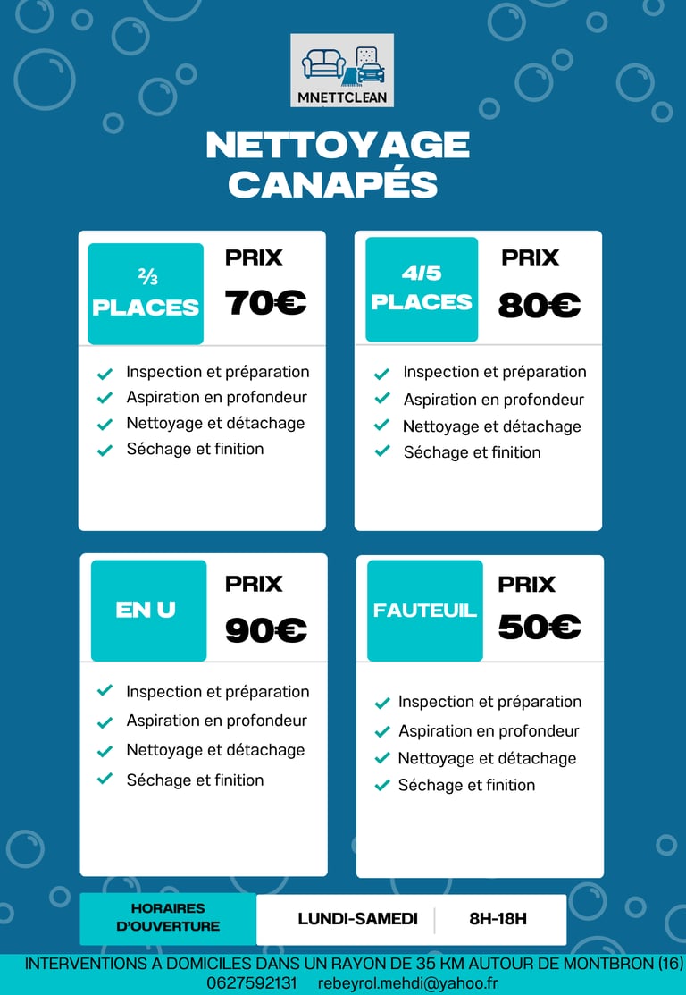 Chez Mnet Clean, nous intervenons directement à domicile pour rendre vos canapés propres, désinfectés et sans taches.