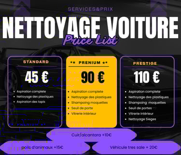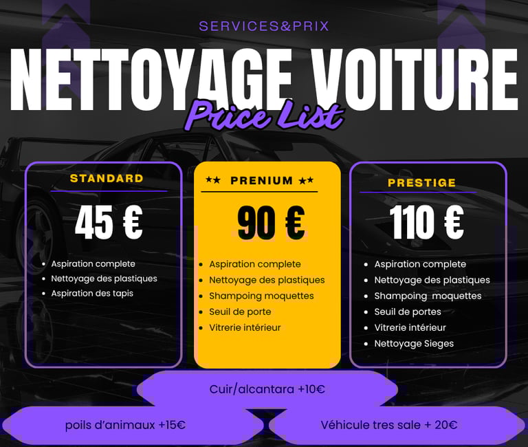Offrez une nouvelle fraîcheur à l’intérieur de votre véhicule grâce à notre service de nettoyage à domicile ! Nous éliminons taches, poussières, poils d’animaux et mauvaises odeurs pour un habitacle propre et sain. Grâce à des produits professionnels et un savoir-faire, nous redonnons éclat et confort à votre véhicule sans abîmer les surfaces. Idéal pour les familles, les passionnés d’automobile ou tout conducteur soucieux de rouler dans un environnement agréable.