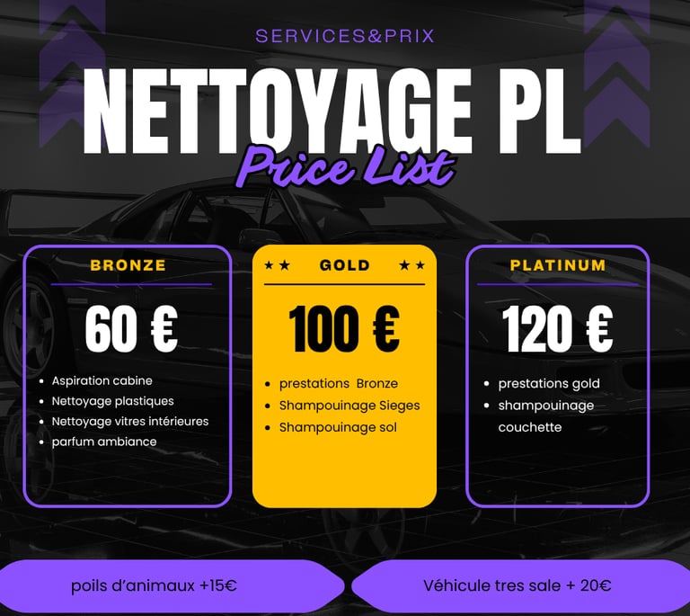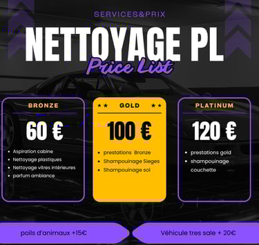 Offrez à votre flotte une propreté irréprochable avec notre service professionnel de nettoyage intérieur de véhicules ! Nous intervenons directement sur site pour entretenir voitures, utilitaires et poids lourds, en éliminant taches, poussières, bactéries et mauvaises odeurs. Grâce à nos équipements et produits adaptés, vos véhicules restent propres, sains et valorisent l’image de votre entreprise. Idéal pour les sociétés de transport, garages, concessions et entreprises disposant d’une flotte professionnelle.